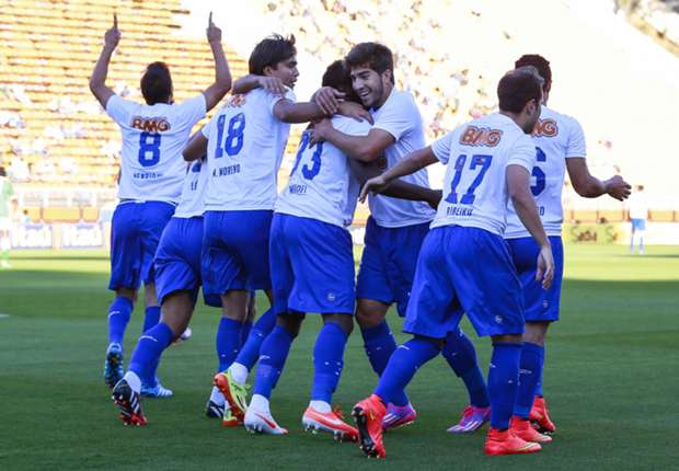 A pressão do Cruzeiro foi total nos 20 minutos do primeiro tempo. E logo aos dez minutos de jogo marcava o seu segundo gol na partida. O primeiro gol saiu de um bela jogada do Marquinhos pela esquerda, que cruzou rasteiro na área, Marcelo Moreno fez o corte e Ricardo Goulart mandou para o fundo da rede. Com o gol, o atacante celeste chegou aos sete gols no Brasileirão, e assumindo artilharia isolada da competição. No lance seguinte, aos dez minutos, Marquinhos, outra vez, cobrou falta perfeita na cabeça de Manoel, que só teve que tocar para o meta do goleiro Fábio. O atual campeão continuou atacante e foi arrasador até os 20 minutos, principalmente pela esquerda, e com Marquinhos fazendo as principais jogadas ofensivas.